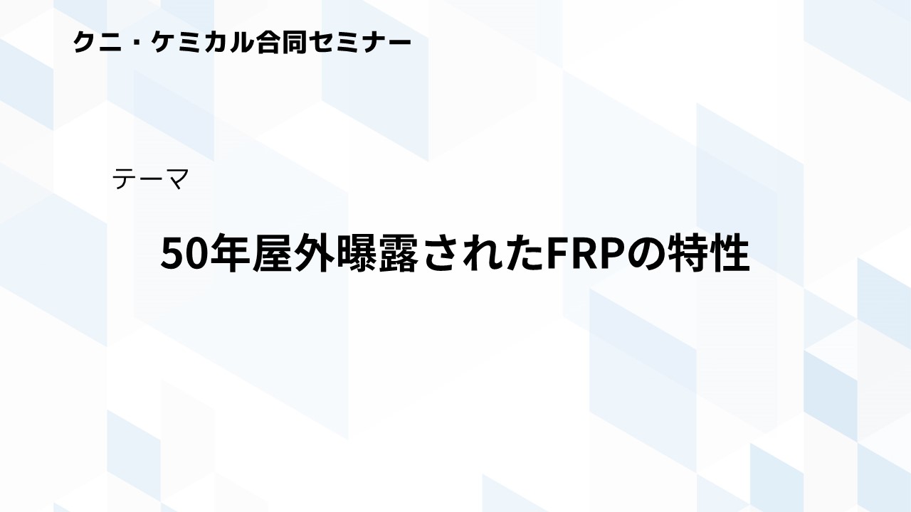「50年屋外暴露されたFRPの特性」オンラインセミナーをYou Tube公開 2024 12/28 お知らせ 技術レポート 2023年2月17日2024年12月28日 株式会社クニ・ケミカル主催のオンラインセミナーに登壇させていただきました。 「50年屋外暴露されたFRPの特性」の詳しい内容は当社技術レポートをご覧ください。⇒コチラ お知らせ 技術レポート #frp #技術レポート #技術相談 #技術評価受託 #研究開発 #設計 よかったらシェアしてね! URLをコピーしました! URLをコピーしました! 一般複合容器(FRP高圧タンク)の廃棄スキーム開発 パートナーシップ構築宣言 この記事を書いた人 frpkazi/rd 関連記事 材料試験・受託試験の前に必須「評価計画(計画書)」ページを公開しました 2026年2月21日 FRP劣化診断のご相談について(お問い合わせフォーム/お電話の受付案内) 2026年2月12日 R&Dセンター 2026年の目標 2026年1月1日 FRPカジ公式YouTubeでショート動画配信スタート! 2025年12月16日 【新連載】若手が学ぶ!FRPカジの技術レポート徹底解説(11月スタート) 2025年10月31日 微細ガラス繊維に要注意、身近な“FRP”でも安全第一 2025年9月29日 FRPリサイクル事業についてかながわ経済新聞にて掲載 2025年8月15日 1000回視聴御礼「表面粗さ計SJ-310(ミツトヨ)」動画 2025年8月8日