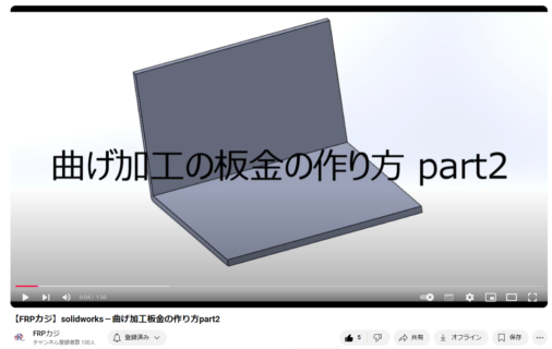 You Tubeチャンネル solidworks-曲げ加工板金の作り方part2